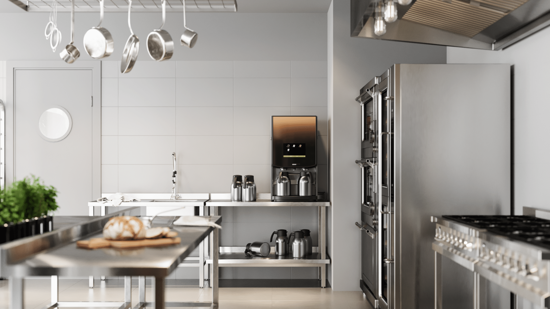 The beverage selection screen automatically switches between cups or decanters based on the position of the flippable cup tray.